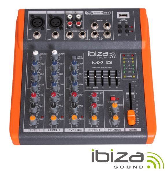 Mesa de mistura 4 Canais 3 entradas PHANTOM USB/REC IBIZA