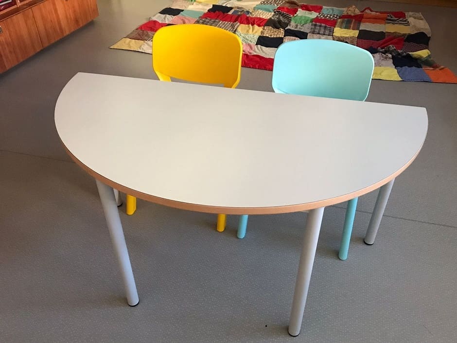 Mesa semicircular com várias dimensões.
