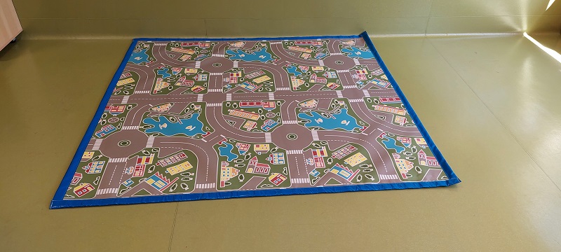 Descrição: tapete pista em vinil com rebordo de proteção.